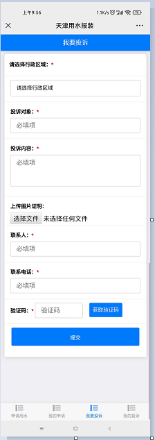 投訴舉報-“天津用水報裝”微信公眾號