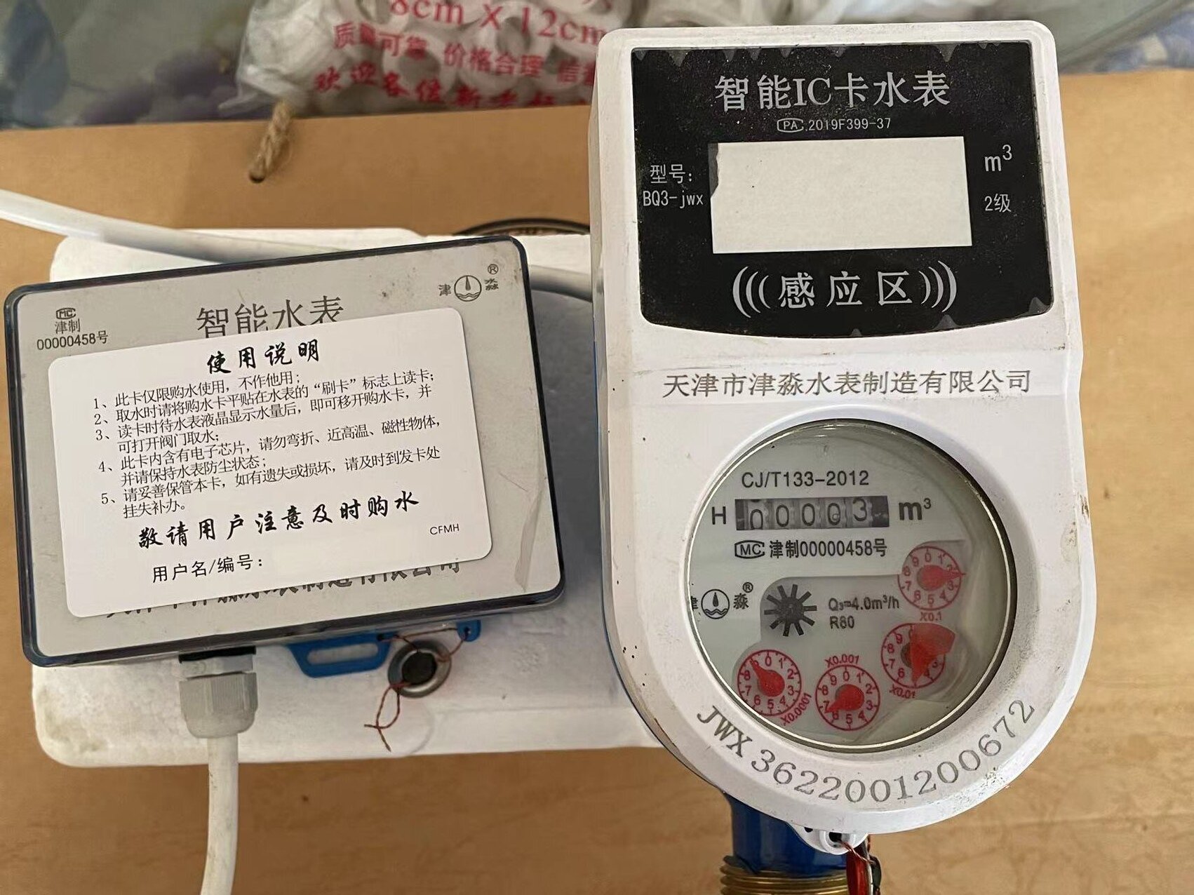 2、用戶持卡在售水處購水后,購水信息寫在磁卡上。以下兩種磁卡表均為分體式。用戶只需將IC卡貼在刷卡區(qū)數(shù)秒,購水信息即讀入,完成充值。電子屏顯示充入水量、累計購買水量和剩余水量等信息。