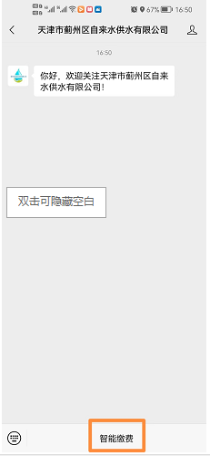 掃描二維碼關(guān)注微信公眾號(hào)或微信搜索“天津市薊州區(qū)自來水供水有限公司”公眾號(hào)并關(guān)注,如圖