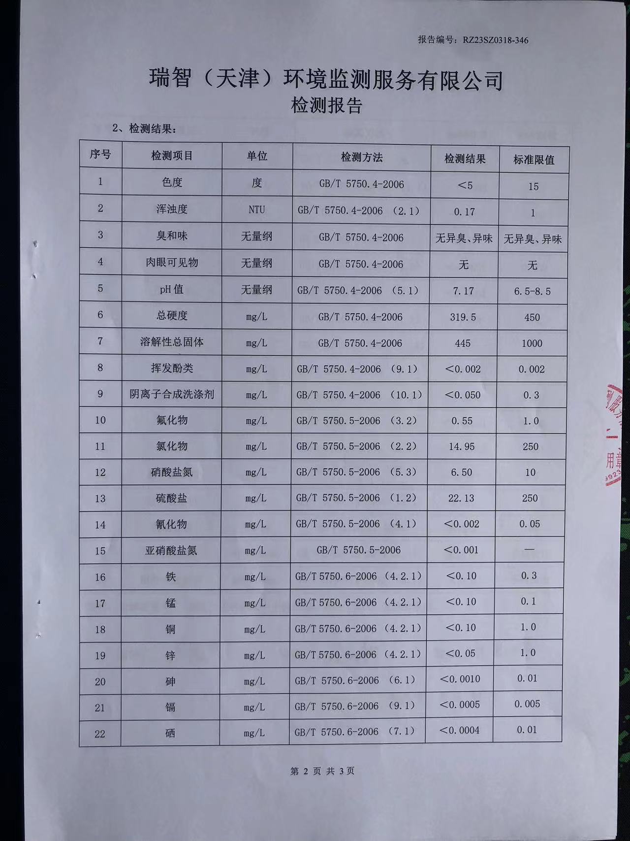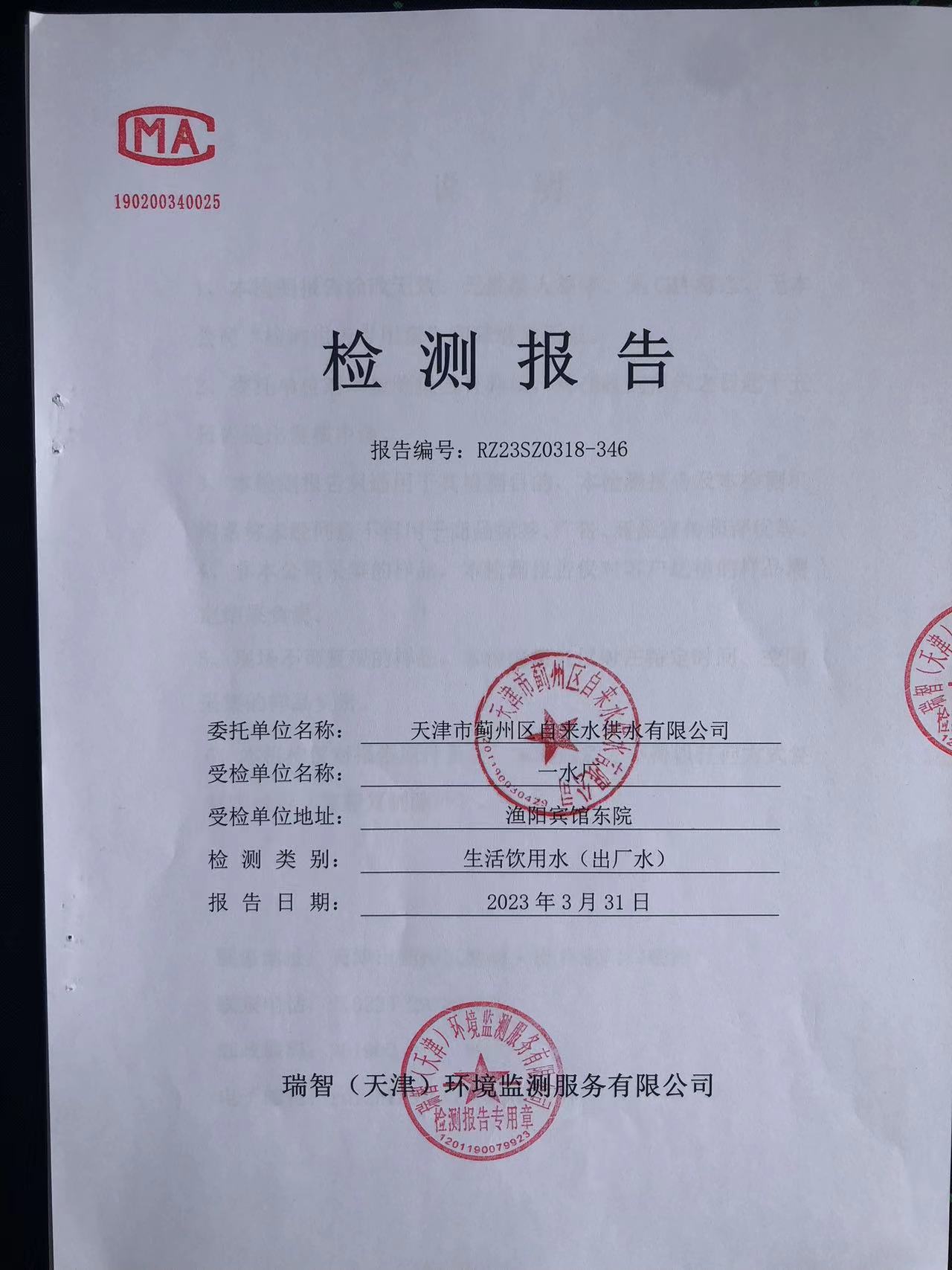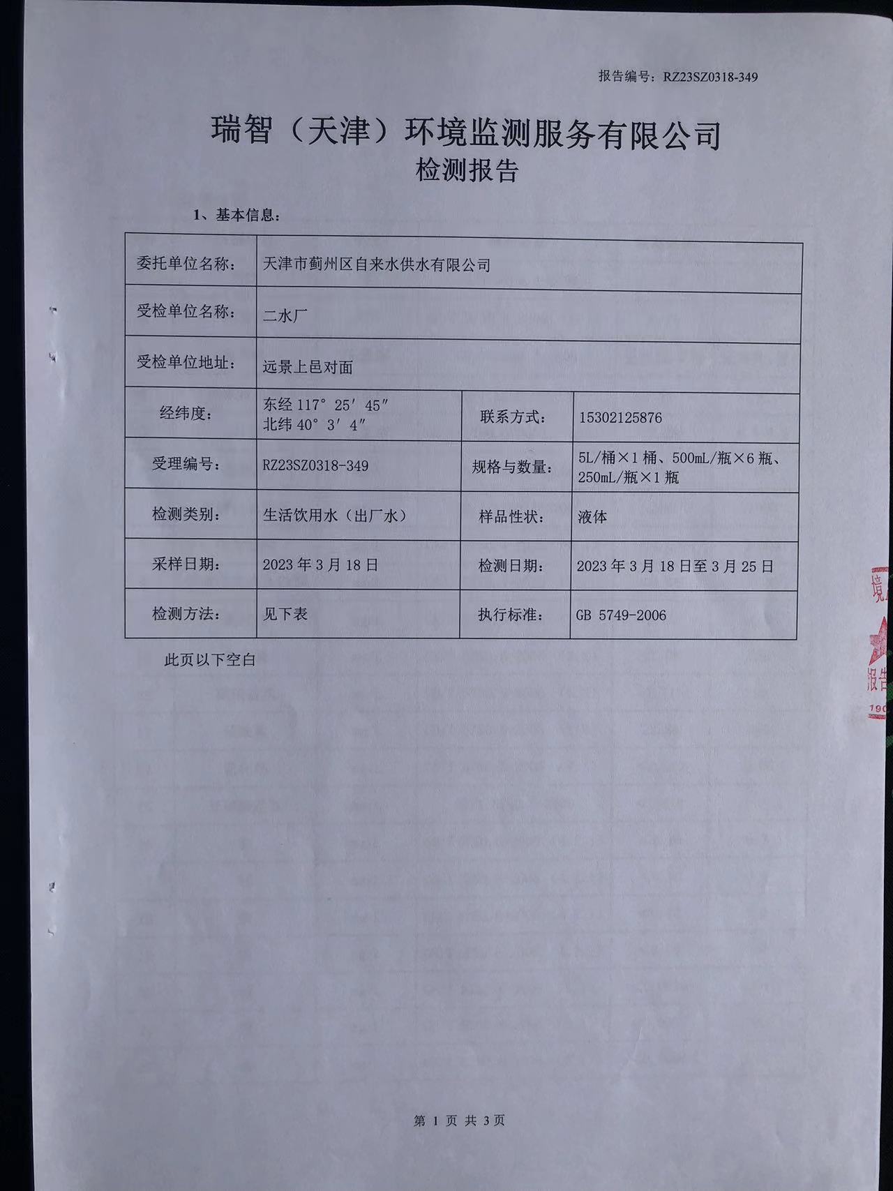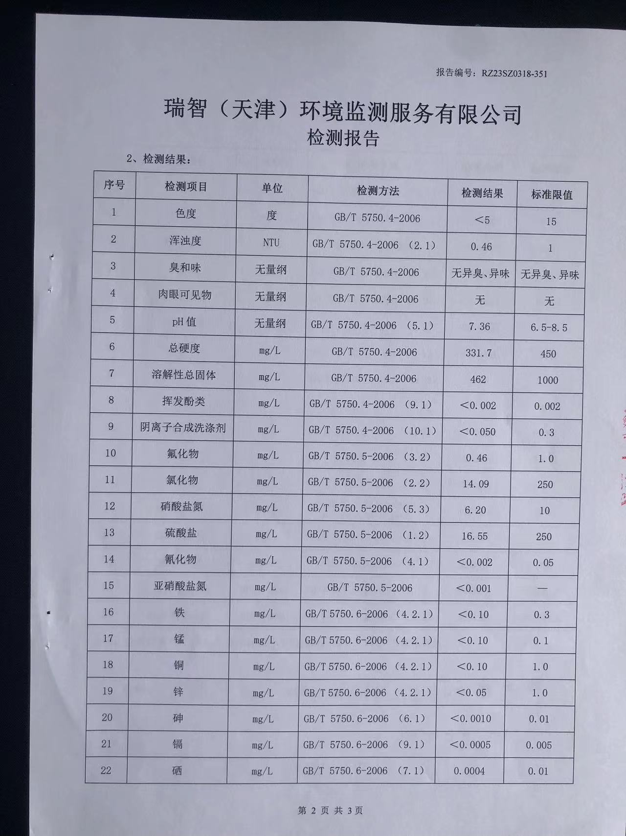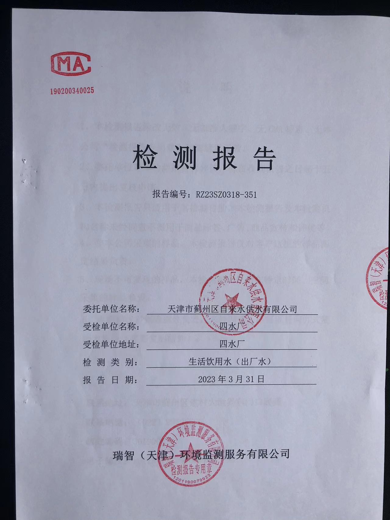 2023年3月份水質(zhì)檢測(cè)報(bào)告