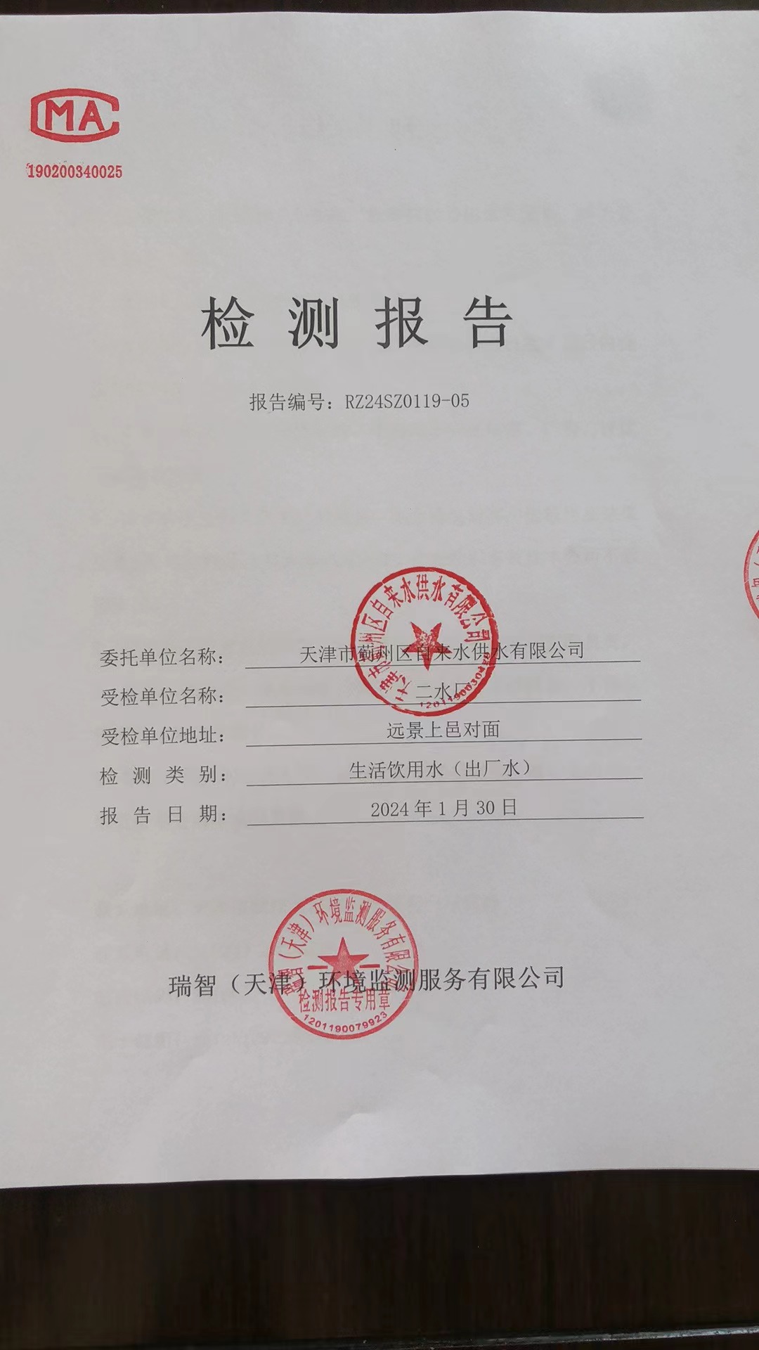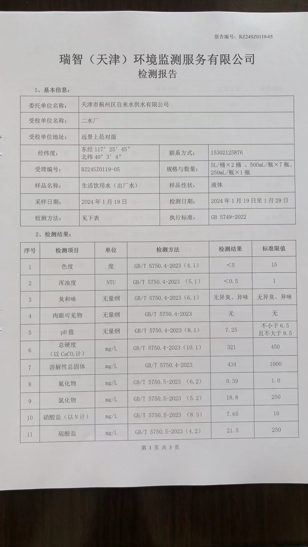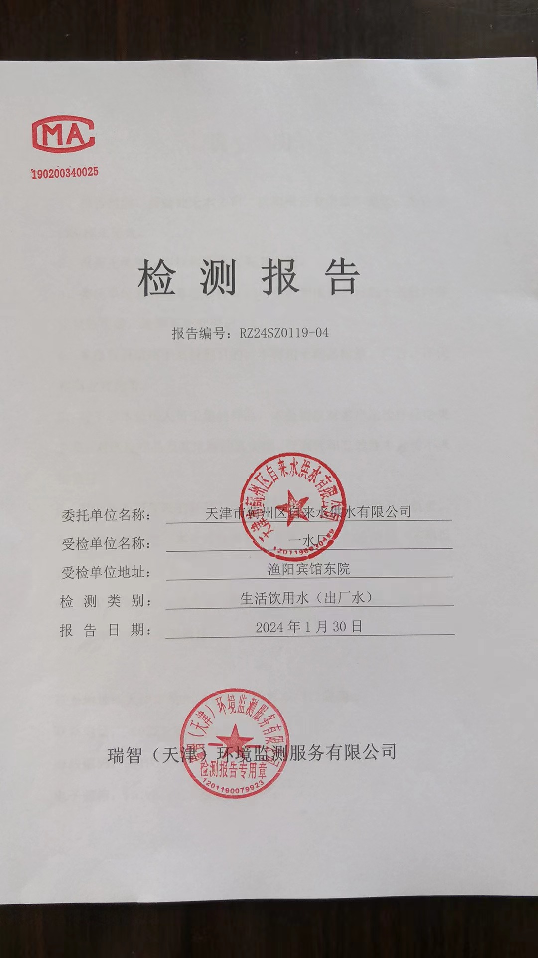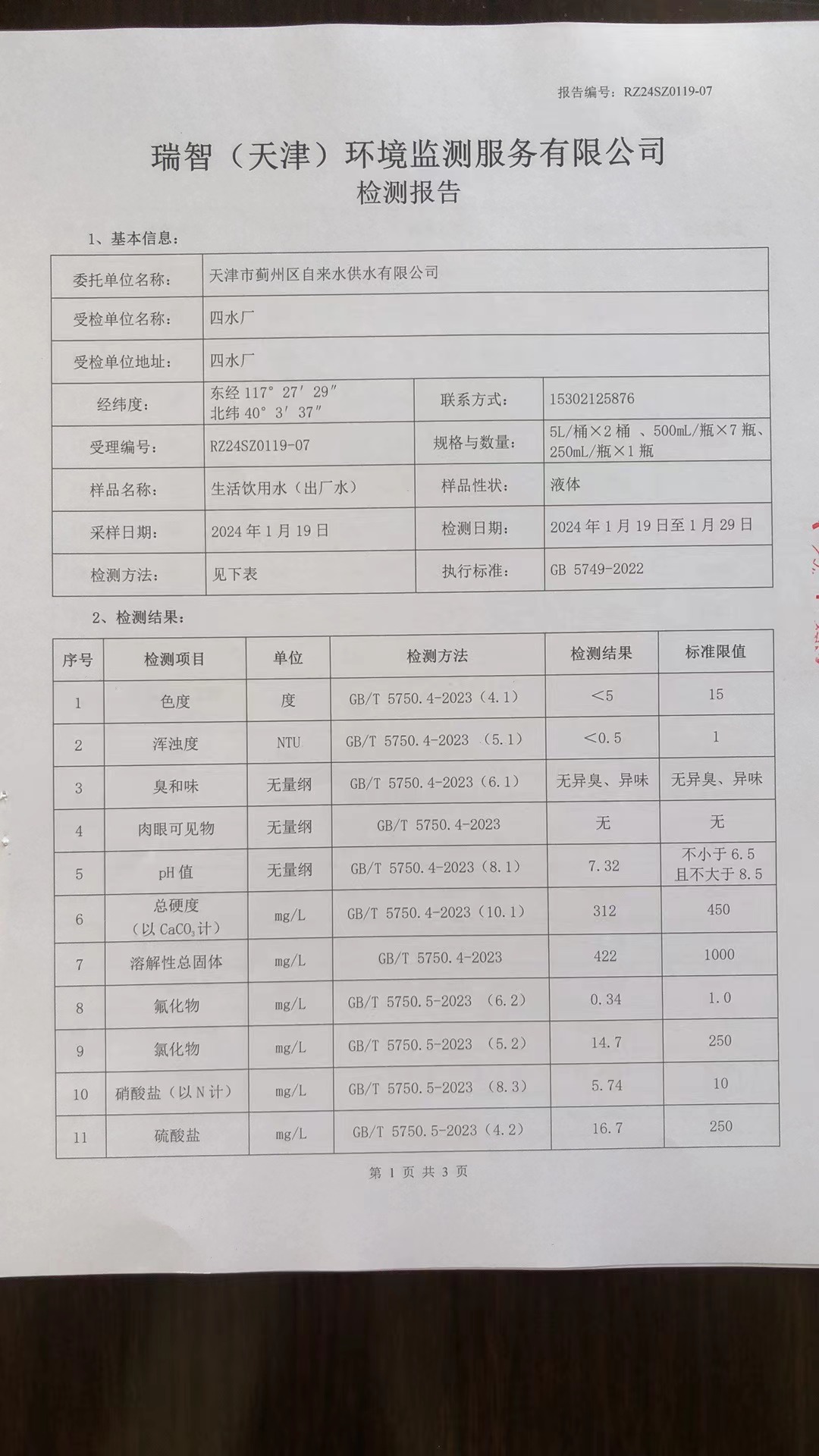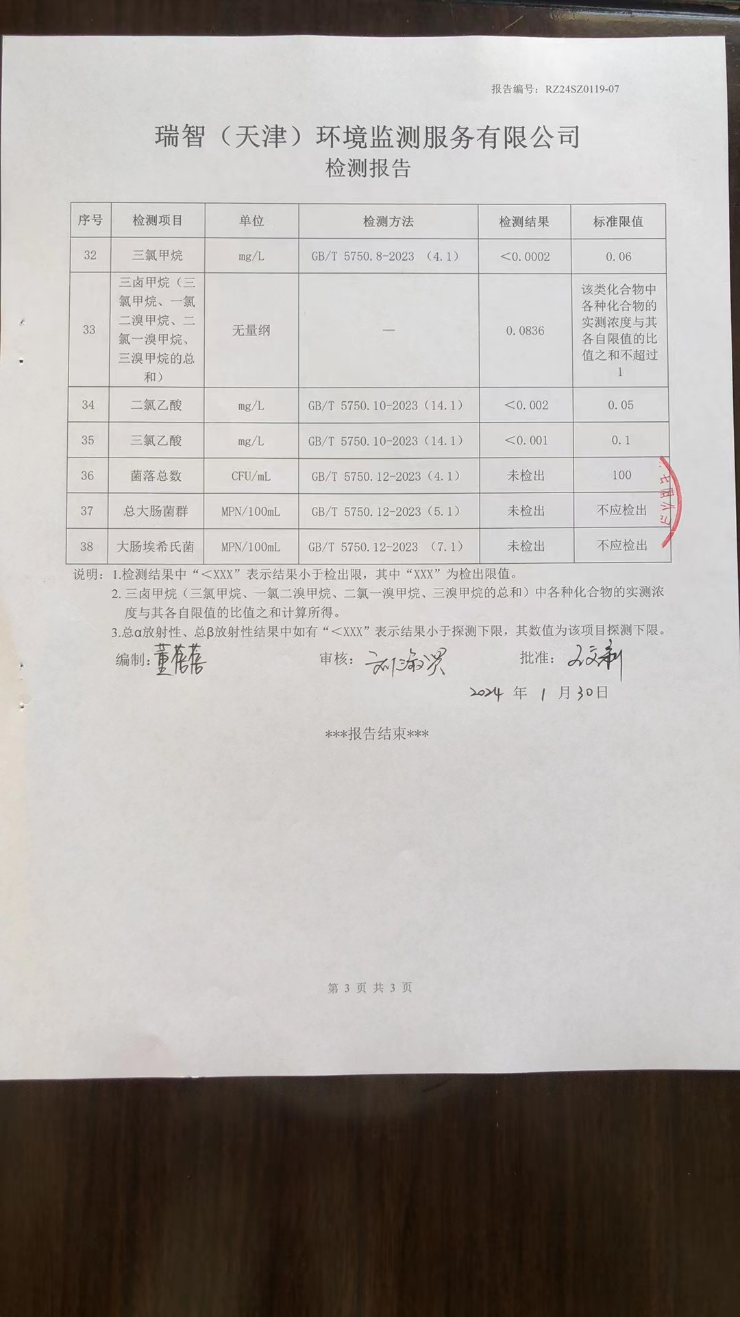 2024年1月份水質(zhì)檢測(cè)報(bào)告