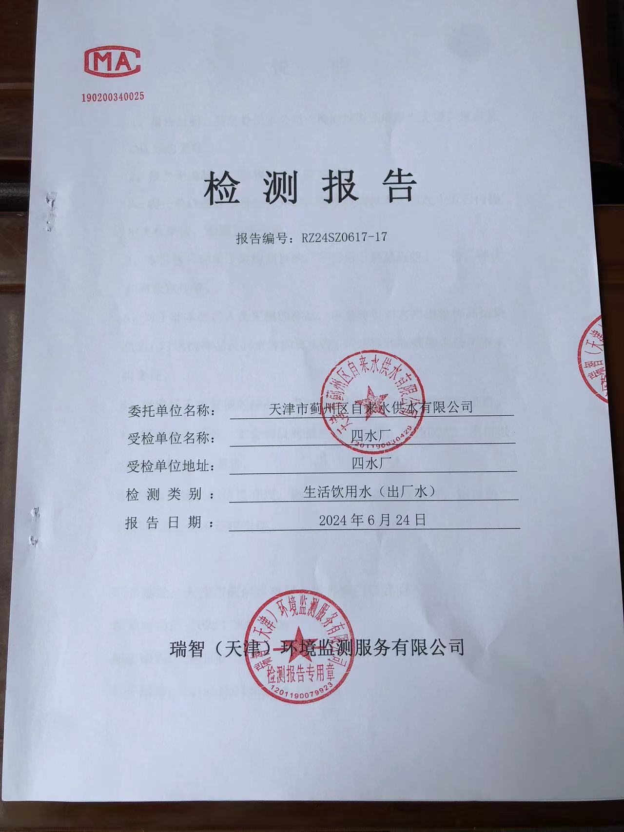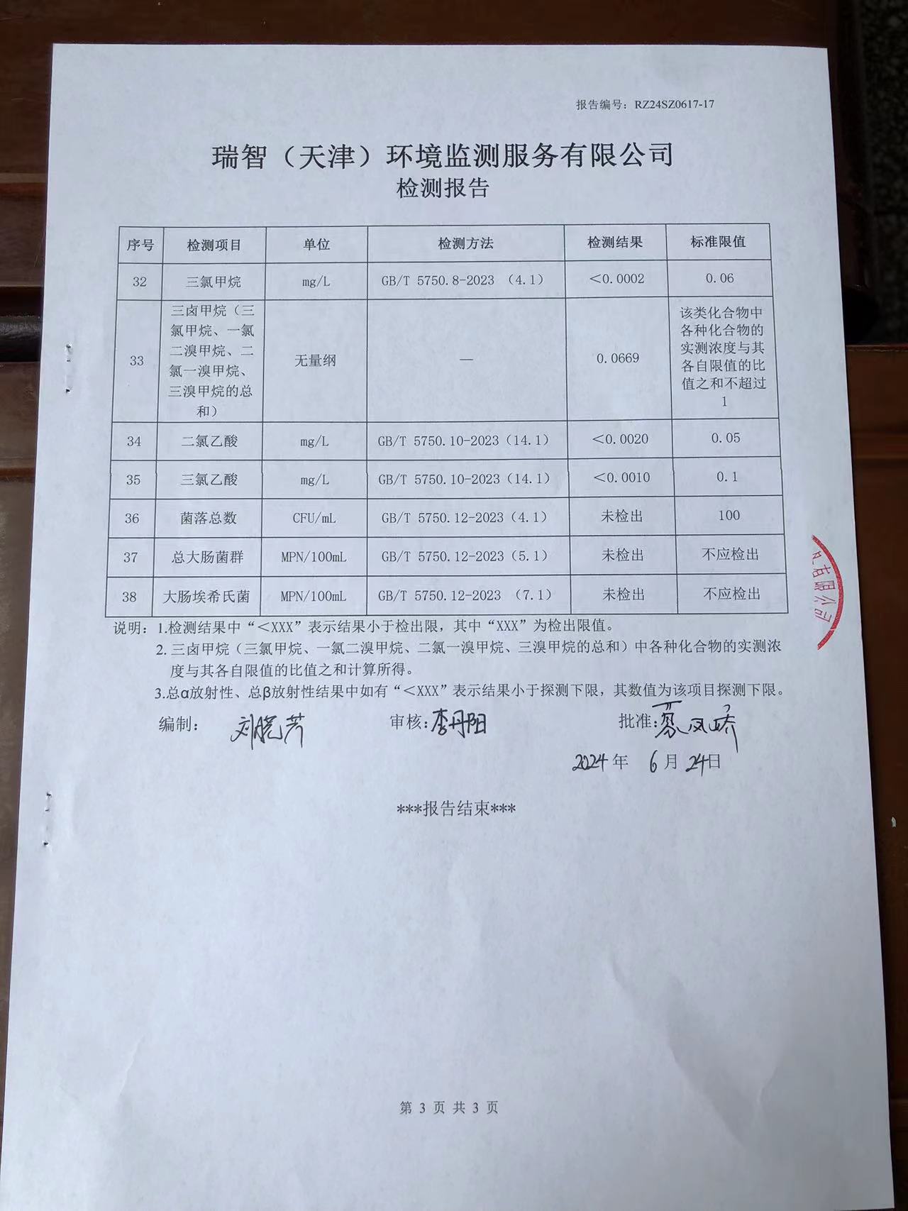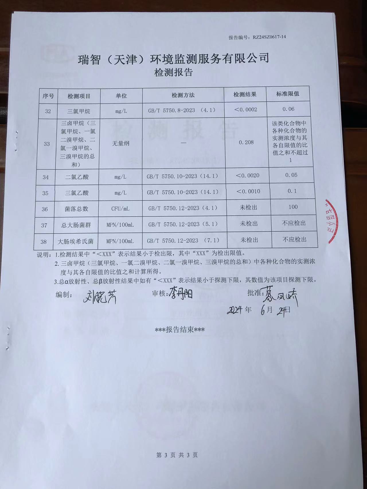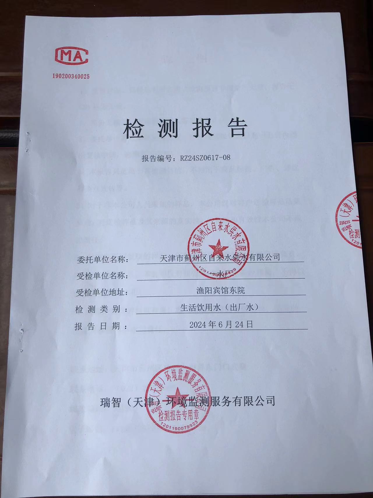 2024年6月份水質(zhì)檢測報告