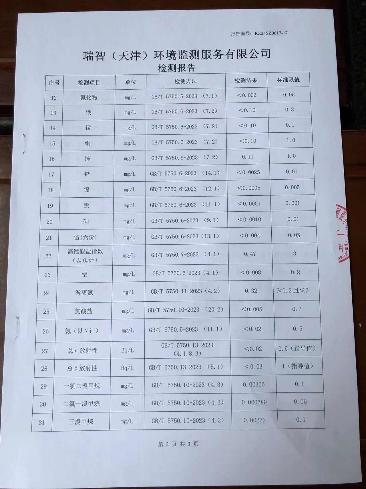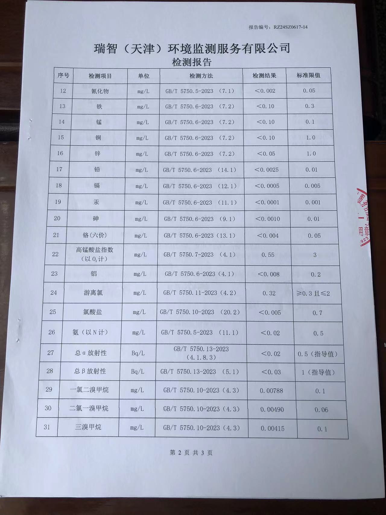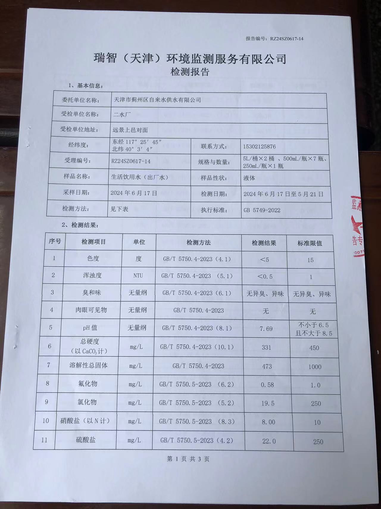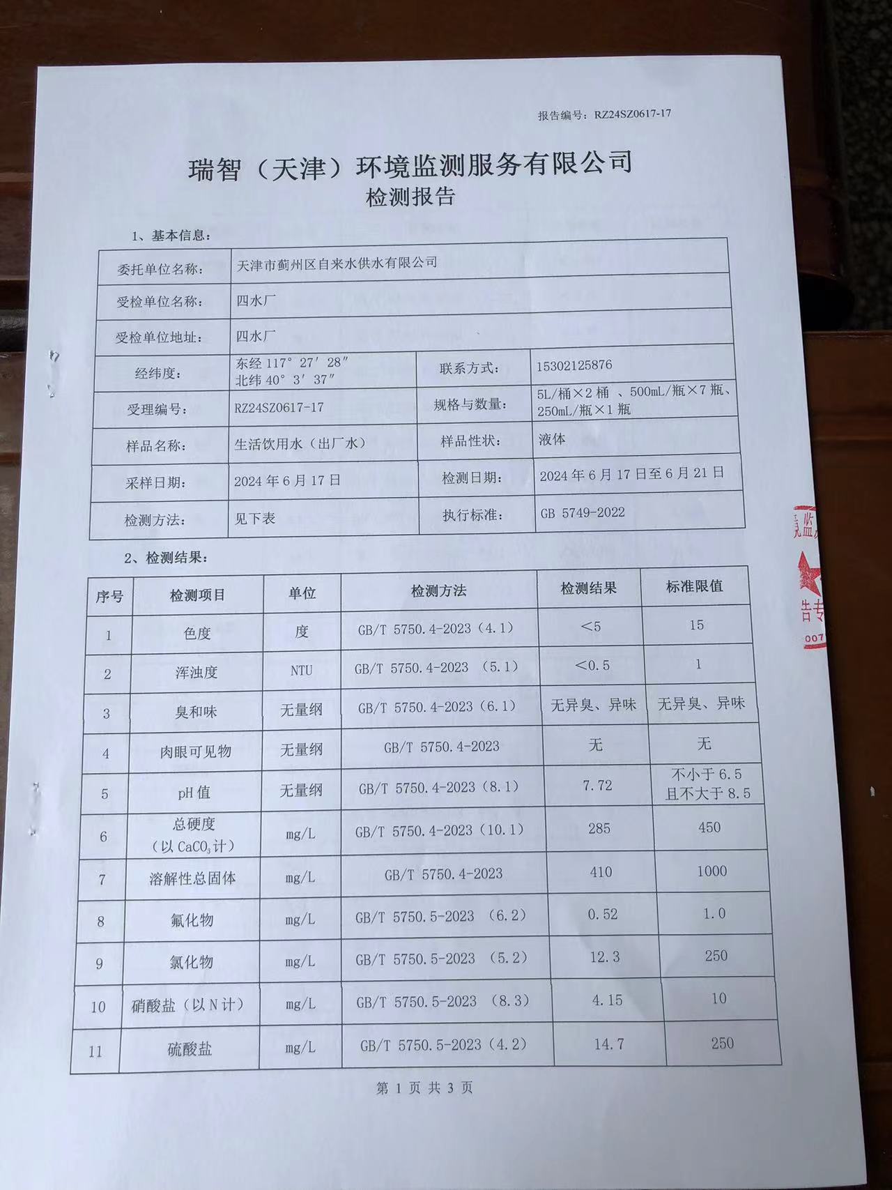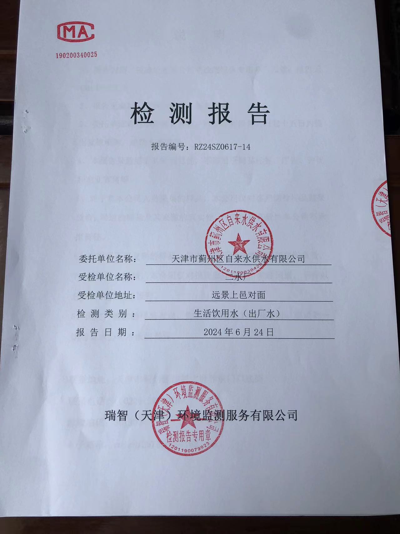 2024年6月份水質(zhì)檢測報告