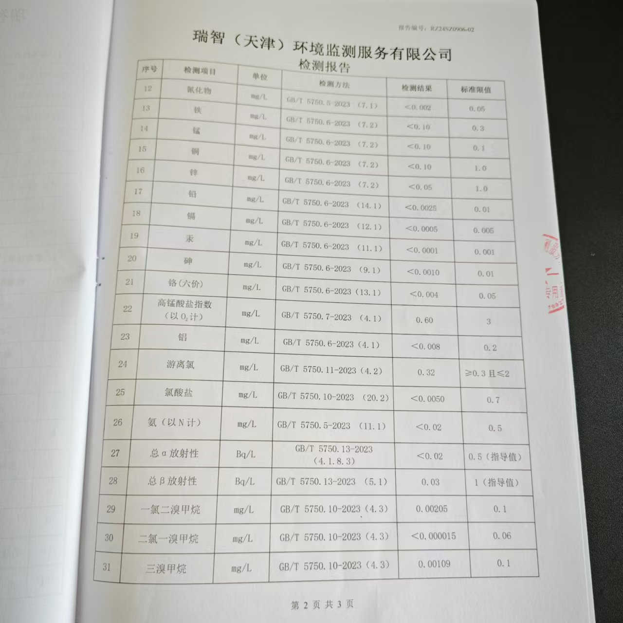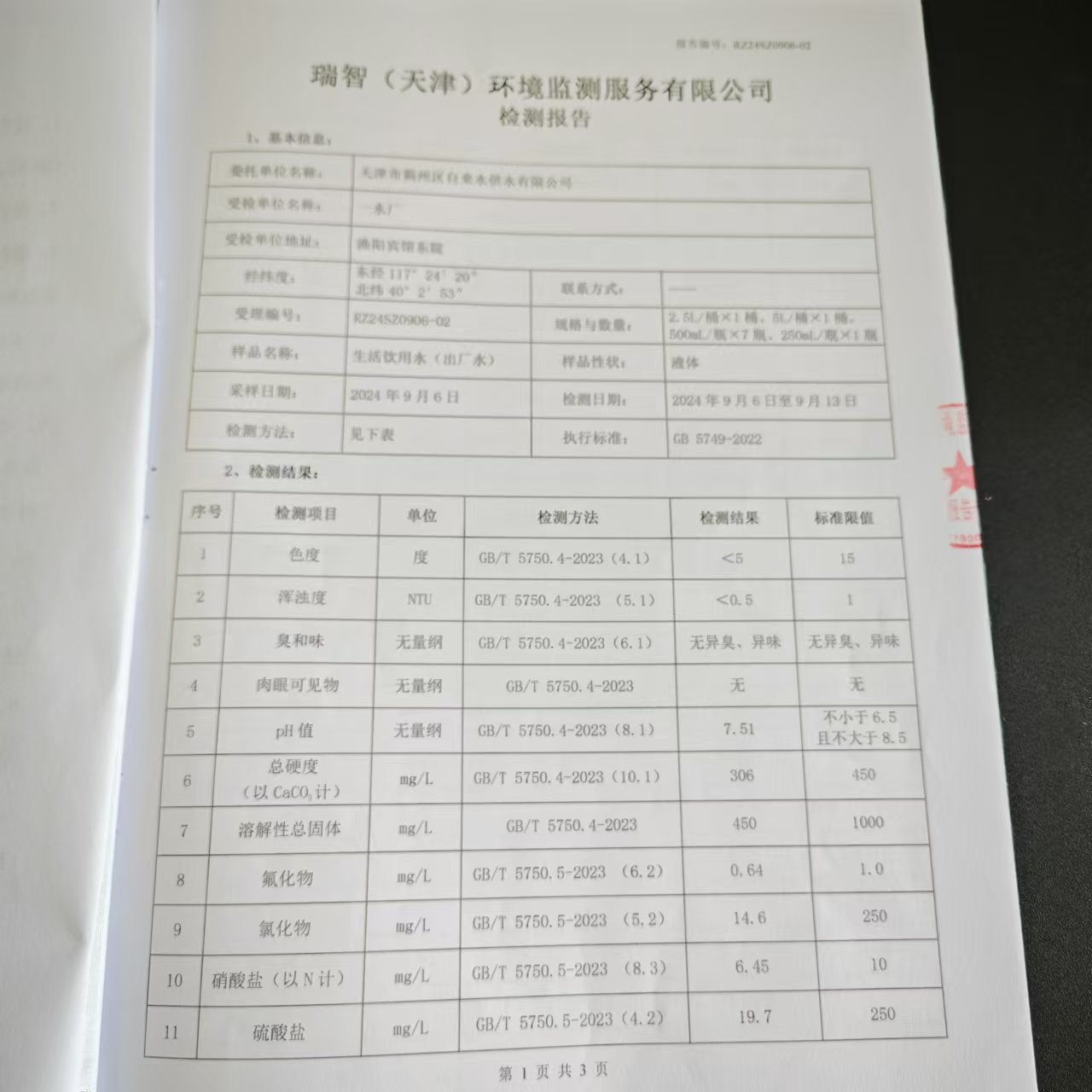 2024年9月份水質(zhì)檢測(cè)報(bào)告