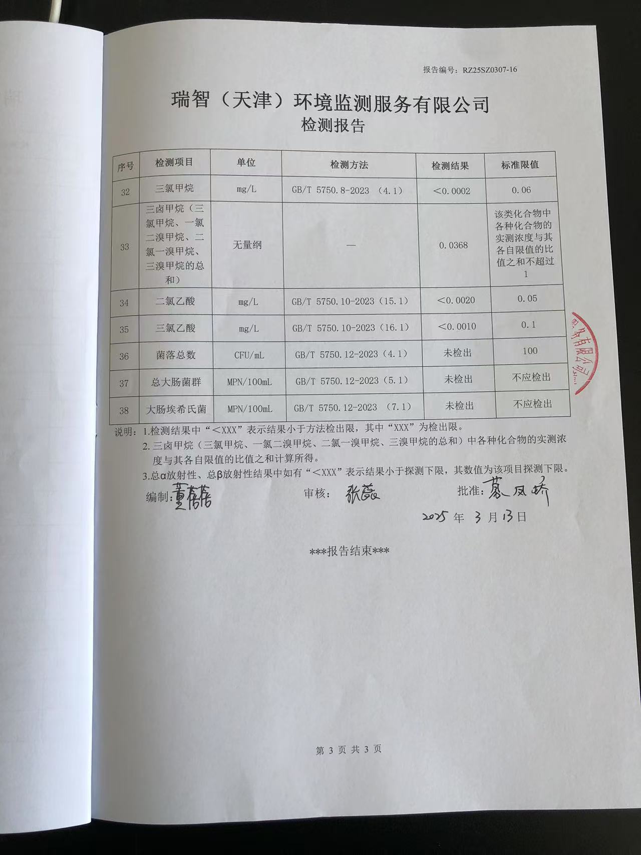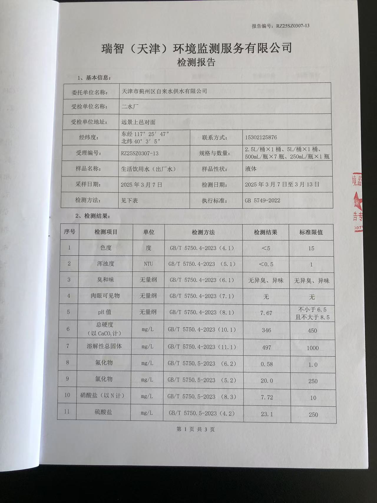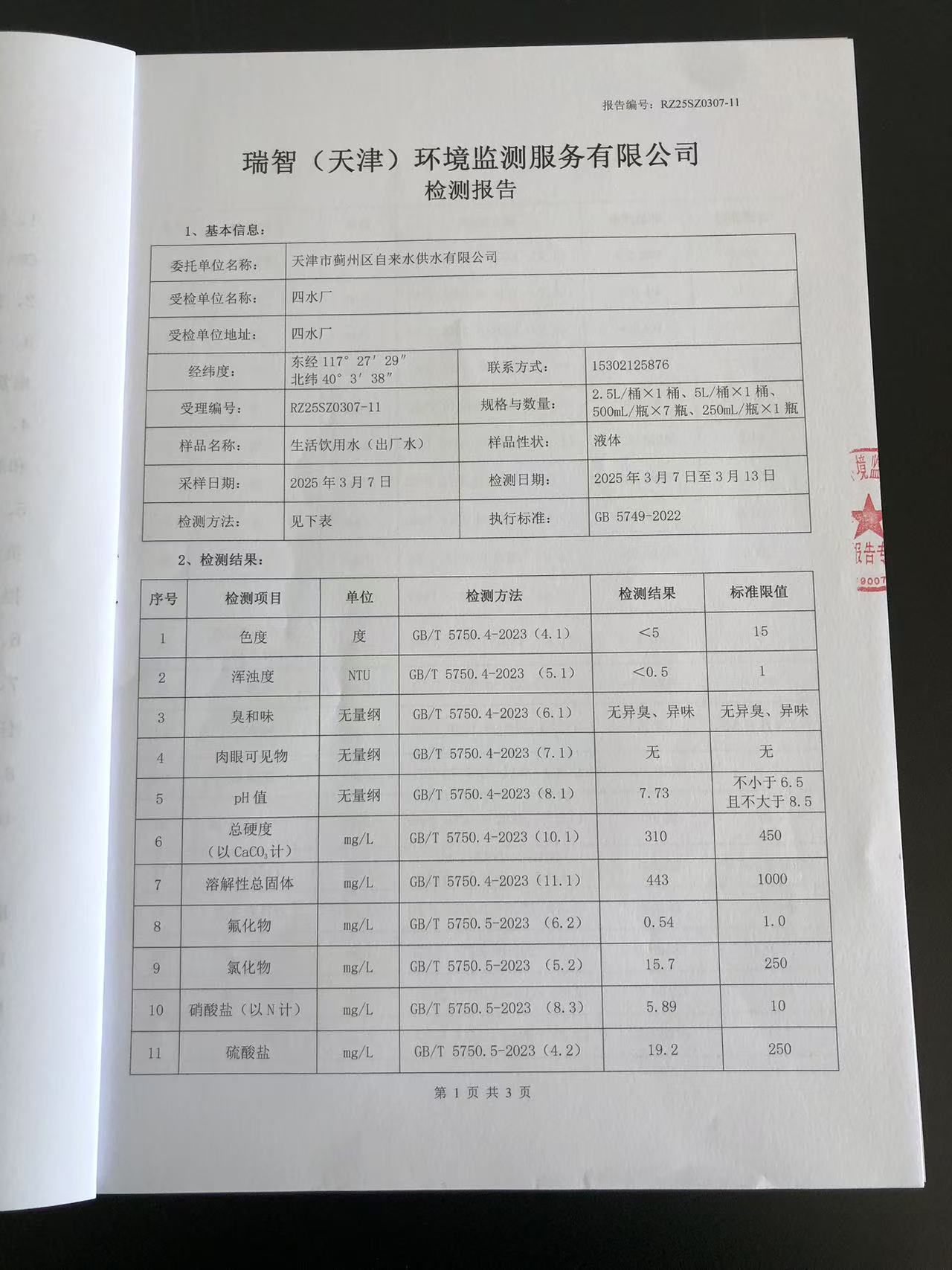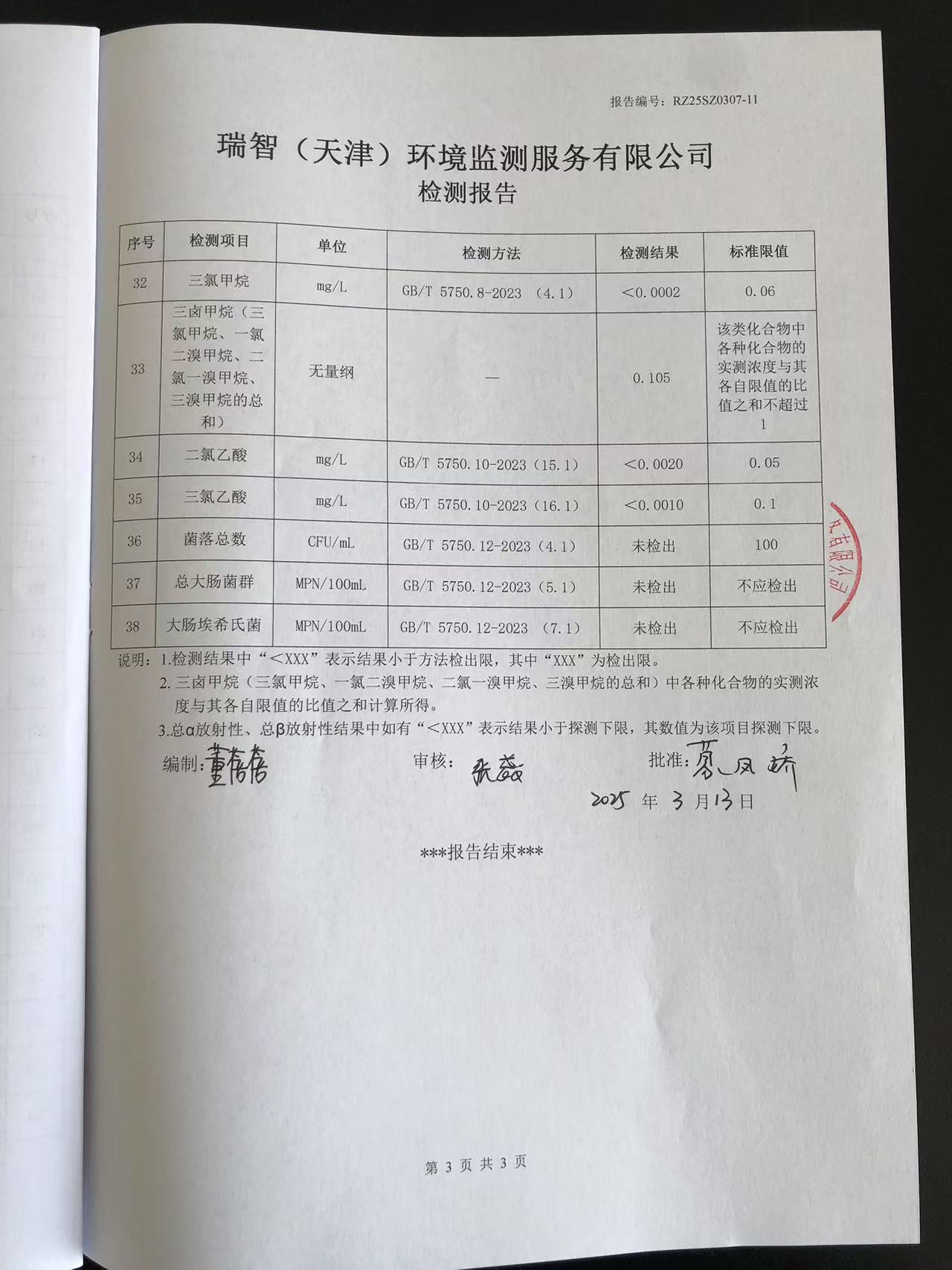 2025年3月份水質(zhì)檢測報告