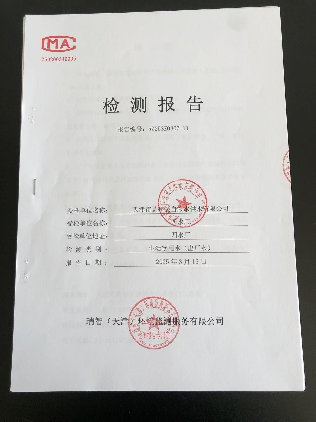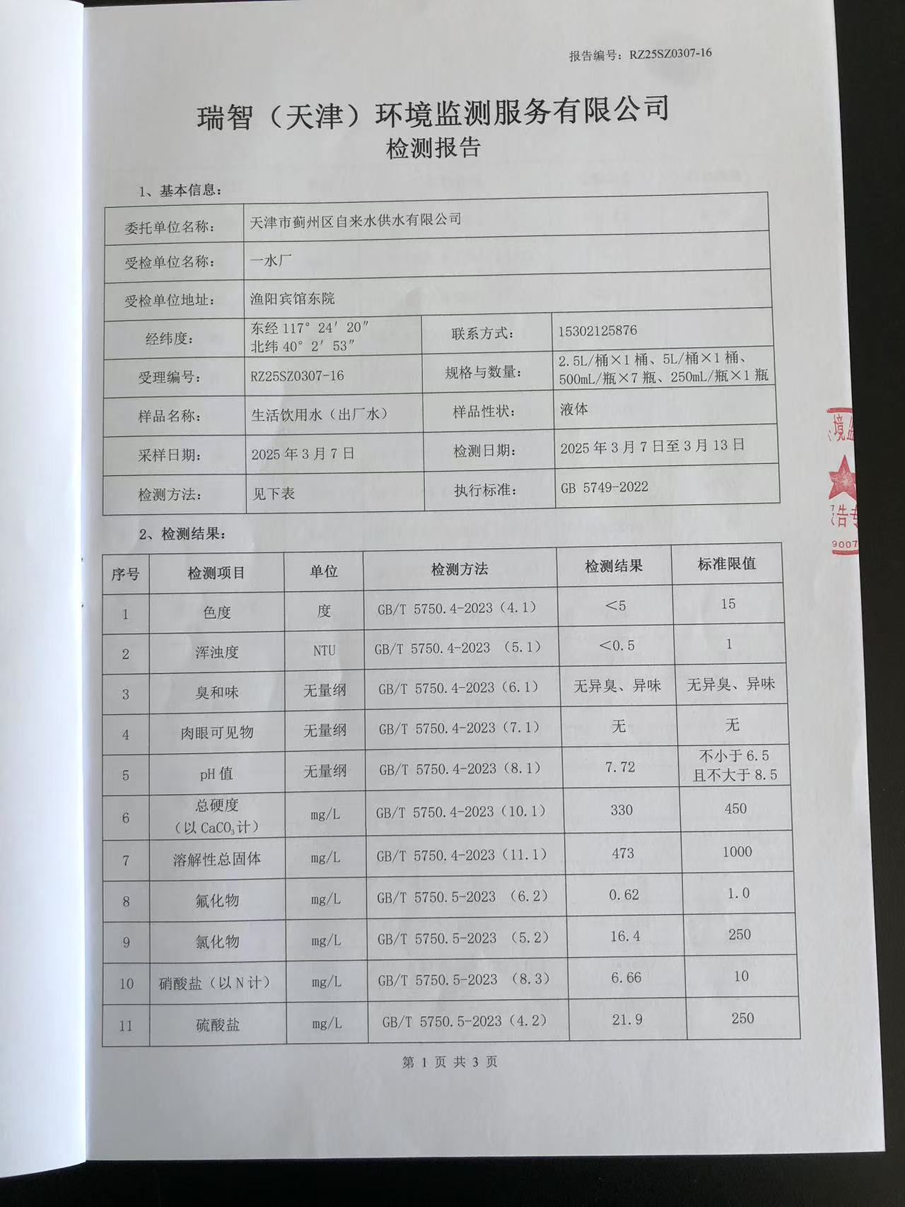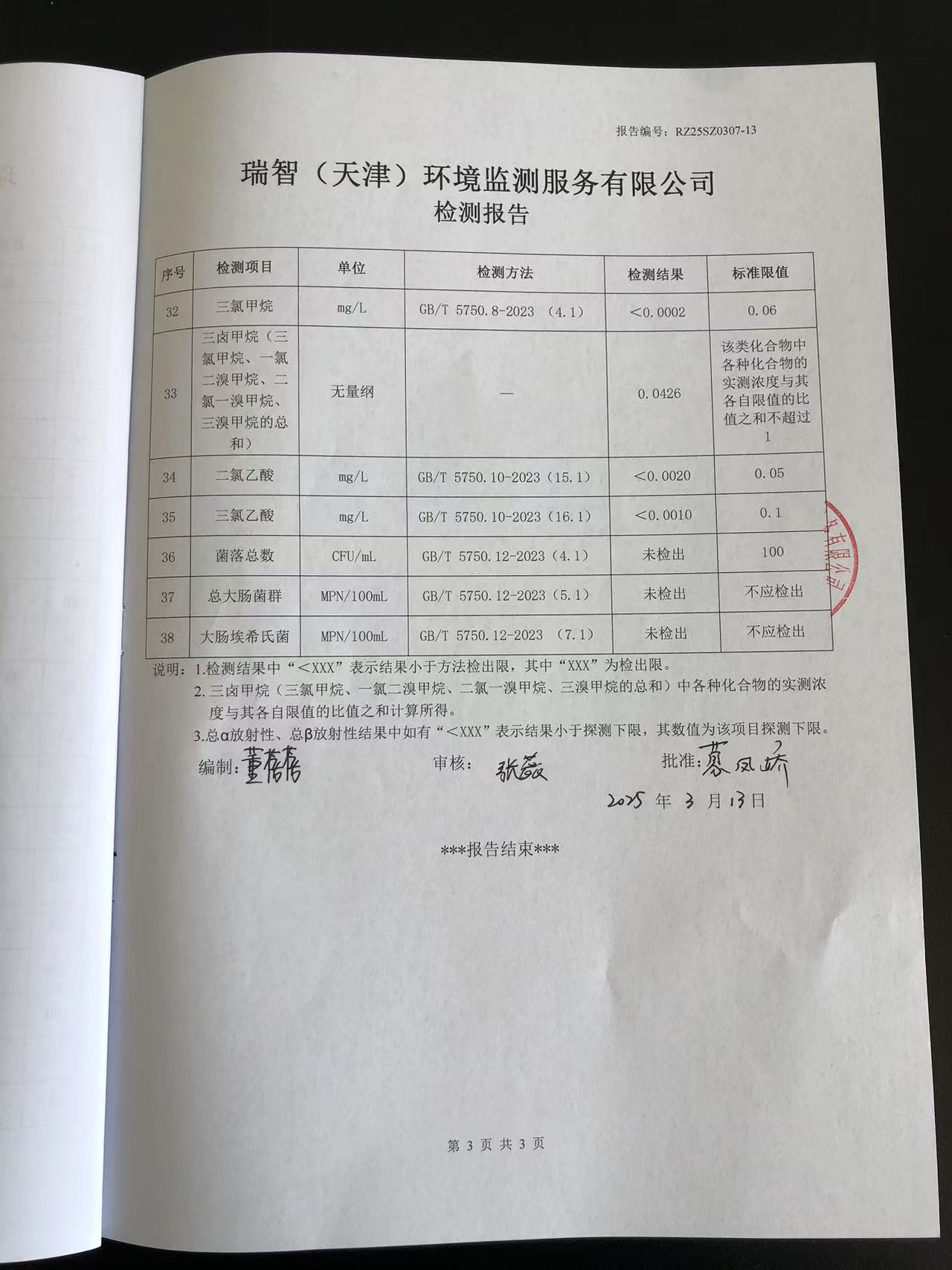 2025年3月份水質(zhì)檢測報告