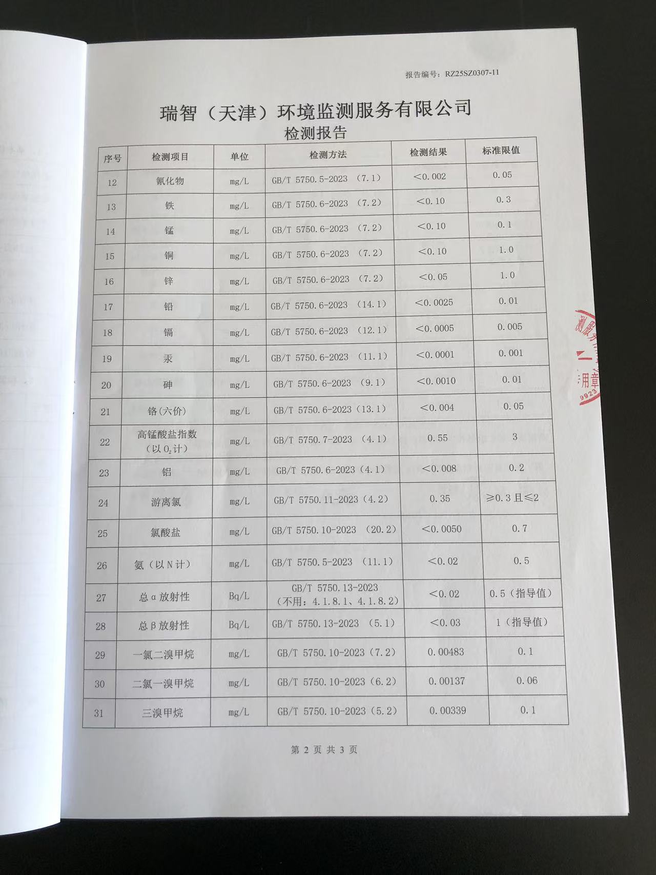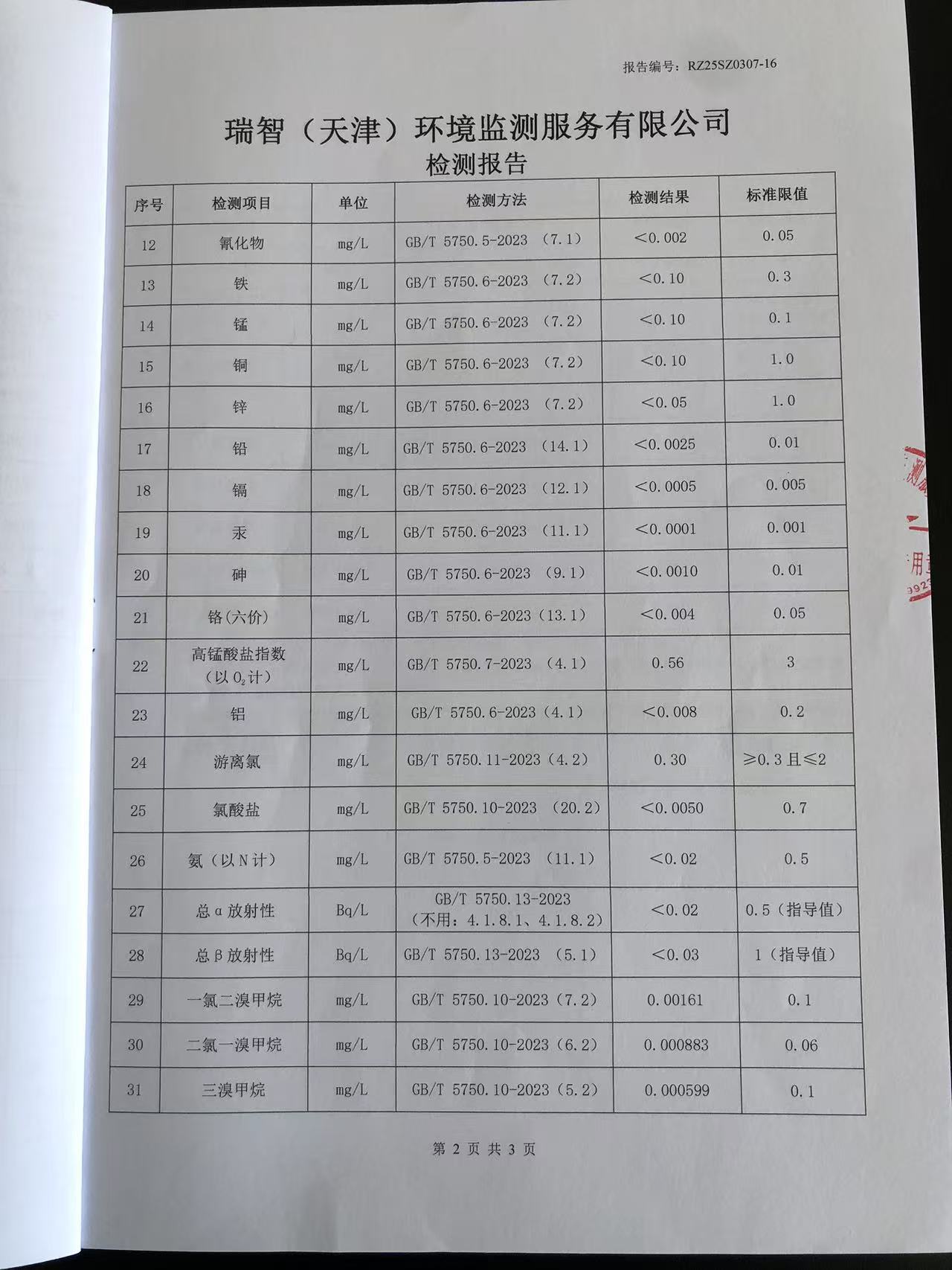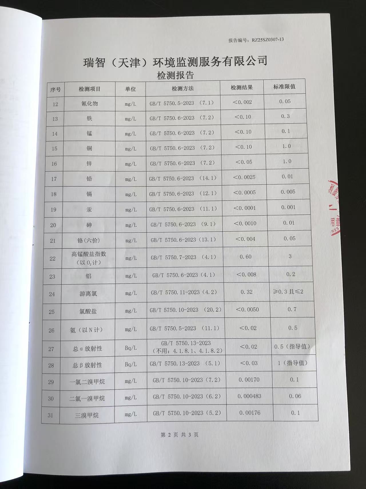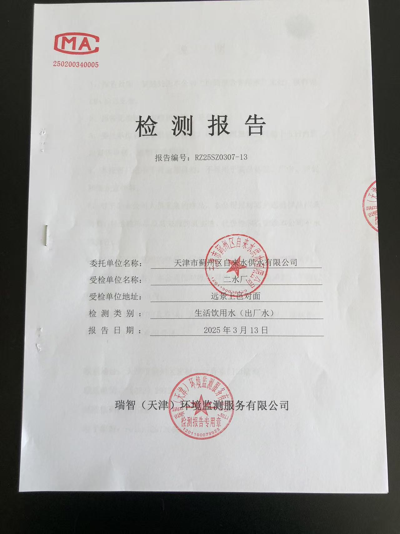 2025年3月份水質(zhì)檢測報告